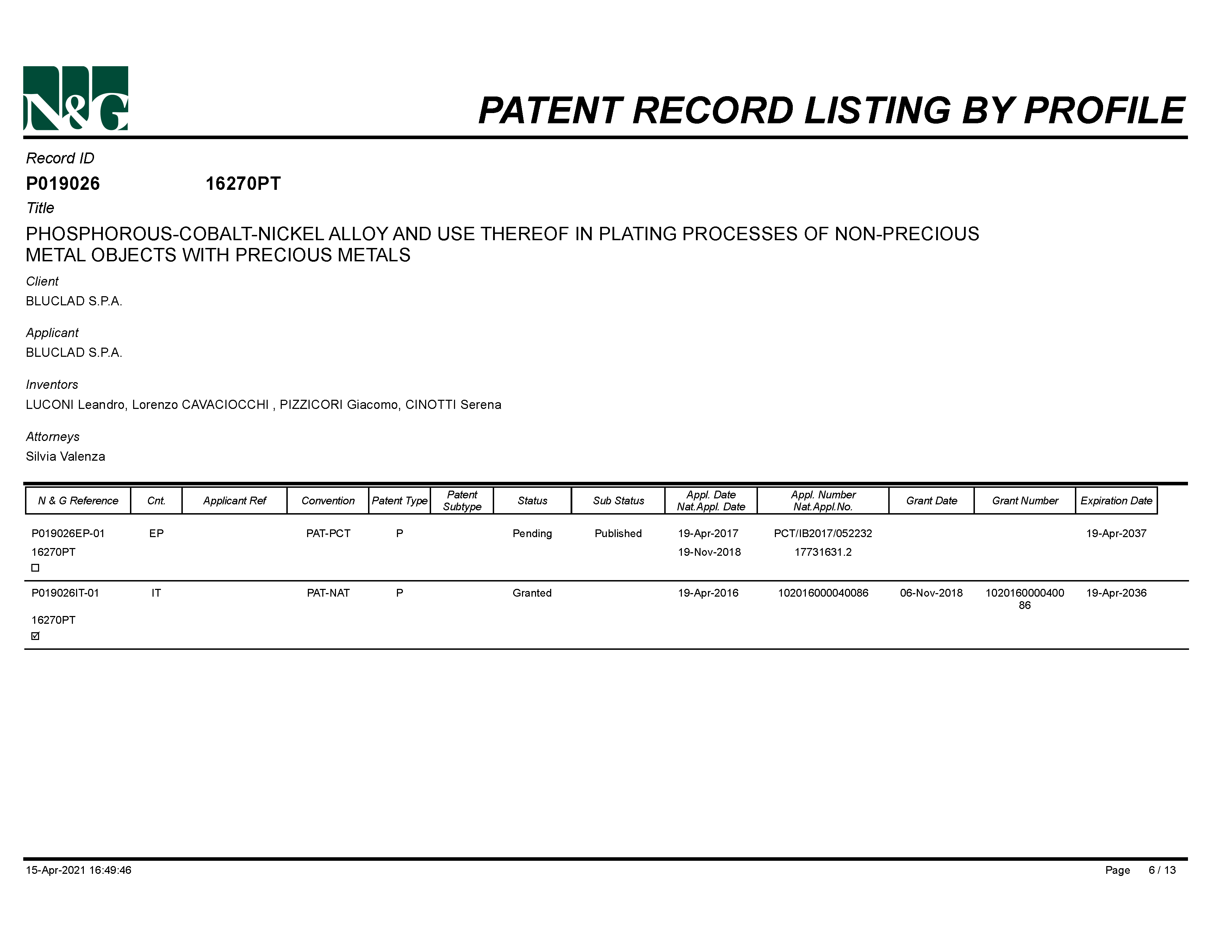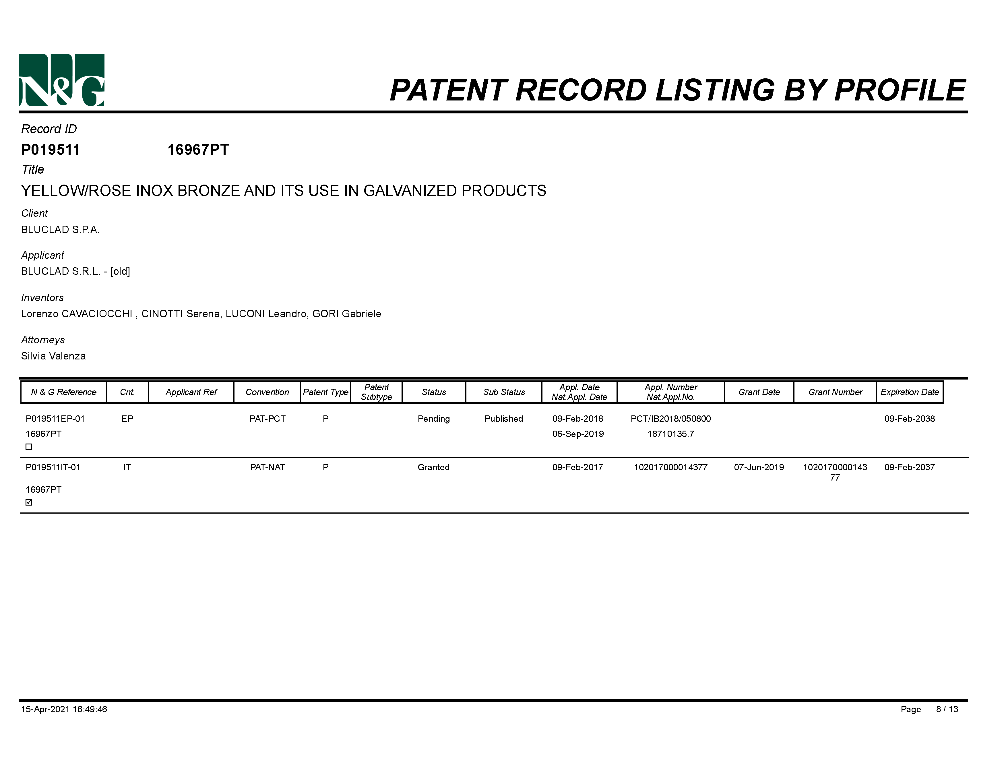 I Nostri Brevetti | Bluclad S.p.A